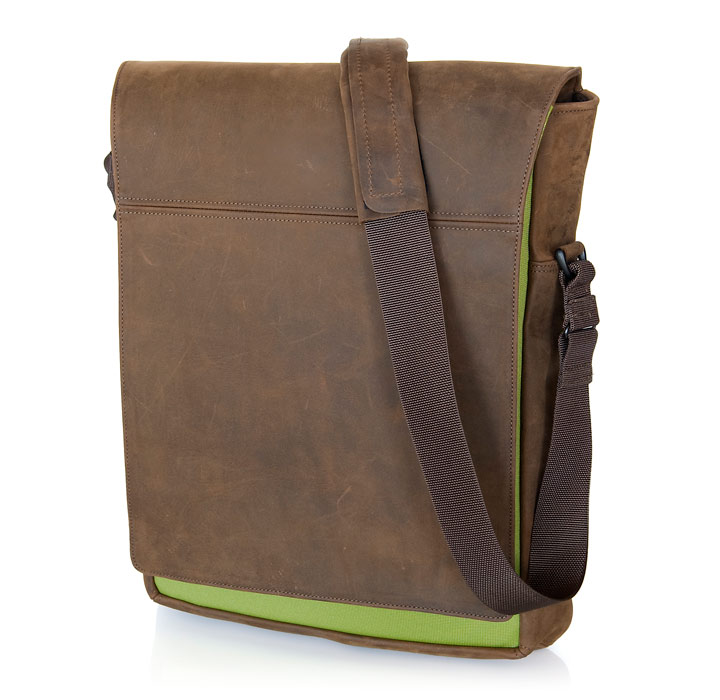 Muzetto af Waterfield i brun læder med grønt stof 15” Muzetto af Waterfield i brun læder med grønt stof 15”