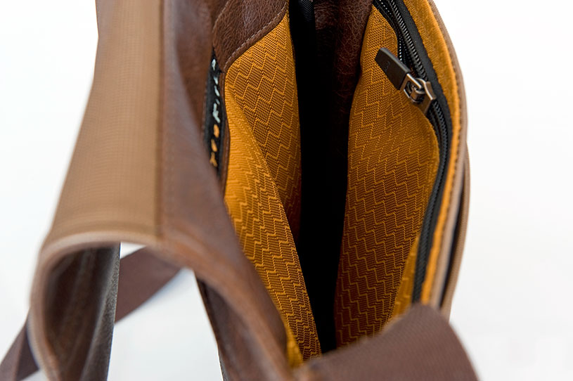 Muzetto af Waterfield i brun læder med grønt stof indvendig top Muzetto af Waterfield i brun læder med grønt stof indvendig top