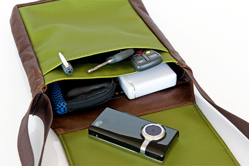 Muzetto af Waterfield i brun læder med grønt stof indvendig Muzetto af Waterfield i brun læder med grønt stof indvendig