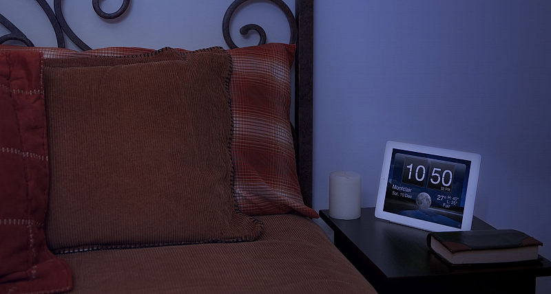Magnus bruger de indbyggede magneter, som du kender fra SmartCoveret til at holde din iPad på plads. Den står stabilt på bordet med en underside af gummi.
