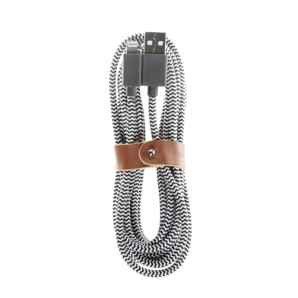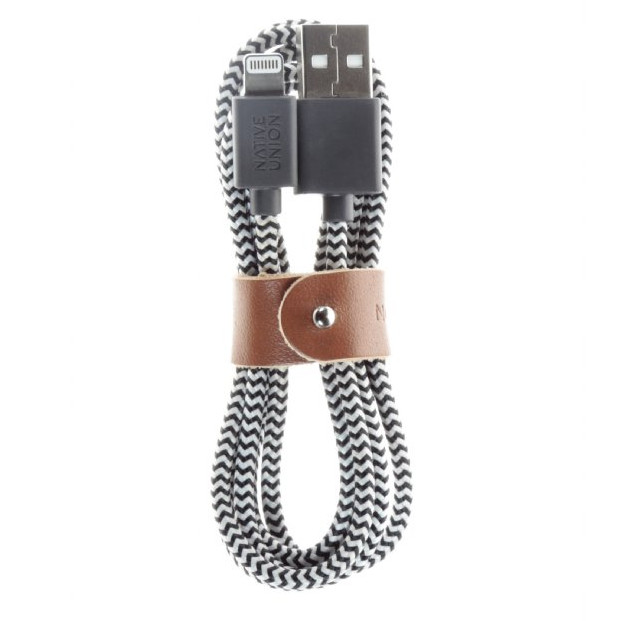 Native Union Belt Cable betyder afslutningen af sammenfiltrede ledninger. Ikke blot vil ledningen er dækket med en lækker mønstret stof og begge ender ser fantastisk ud. Ledningen har også et stilfuldt læderspænde, der gør det nemt at samle og opbevare ledningen, når den ikke er i brug.