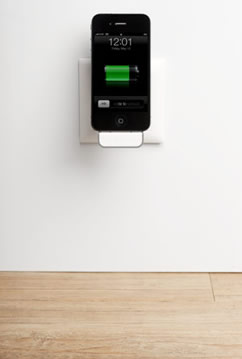 Oplad din iPhone eller iPod direkte i stikkontakten. Rent, enkelt og ledningkaos.