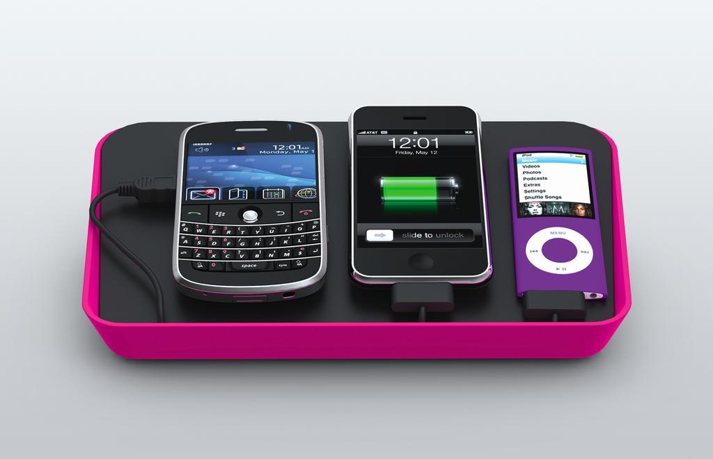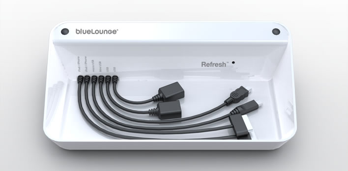 Refresh er en personlig eller delt ladestation til tre eller flere enheder. Kompakt størrelse og kompatibel med de fleste af de nye enheder på markedet i dag. Den kan oplade to iPod/iPhones på samme tid, samtidig med en Blackberry og et bluetooth headset for eksempel. Ved hjælp af de to iPod-stik og to af dine egne iPod ledninger, så kan du oplade fire iPod/iPhones på samme tid. Så det er den perfekte løsning til hele familien!