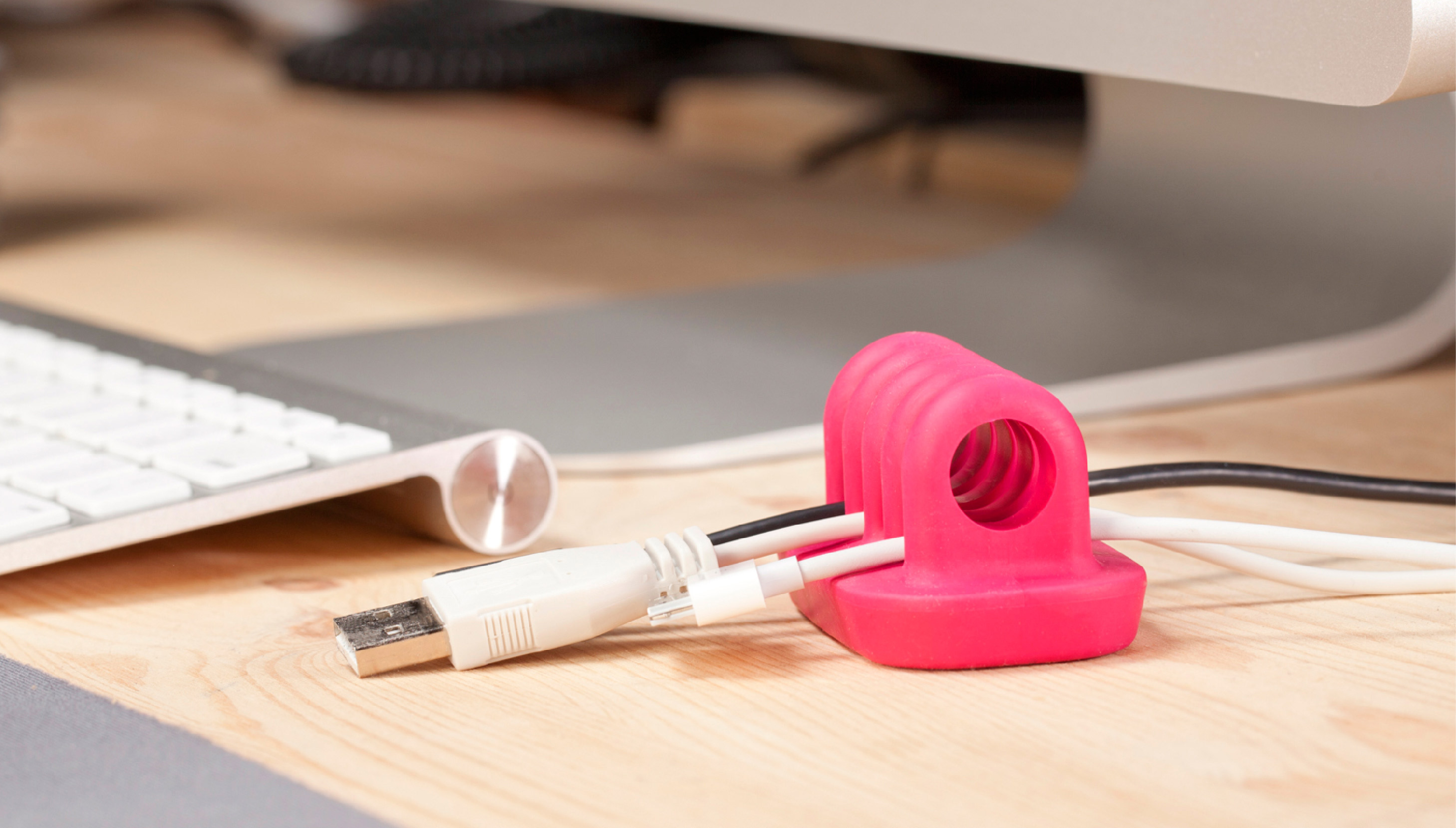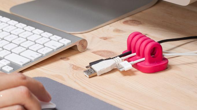 Få styr på dine ledninger med en lille lækker plastikholder, som passer til ethvert skrivebord.
