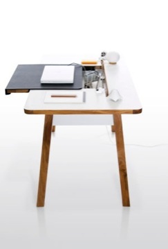 Alt tilbehør og kabler er skjult under en smart træk-ud bordplade, alle let tilgængelige fra toppen. Ikke flere kravleture for at forbinde kablerne!