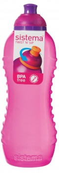 Drikkedunken har Sistemas patenterede TWIST N’ SIP låg. Dette unikke låg gør at flasken åbnes og lukkes uden at fingrene rører ved spidsen.