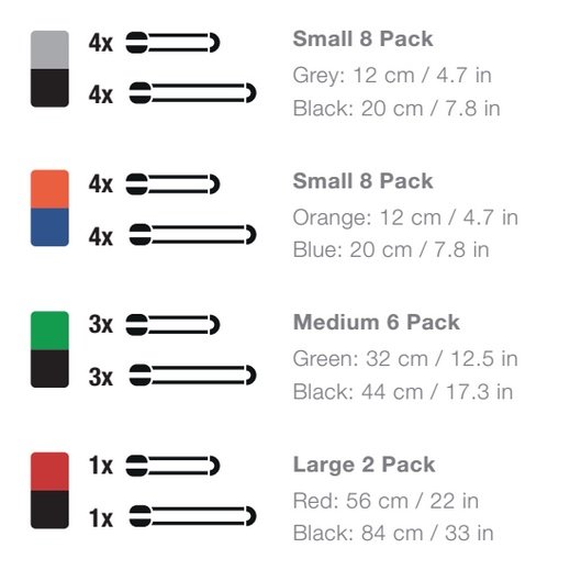 - Medium Pixi 6-pack (3 x 32 cm + 3 x 40 cm) Velegnet til at organisere gadgets i hjemmet, forsegle posen, bundt af bøger mv