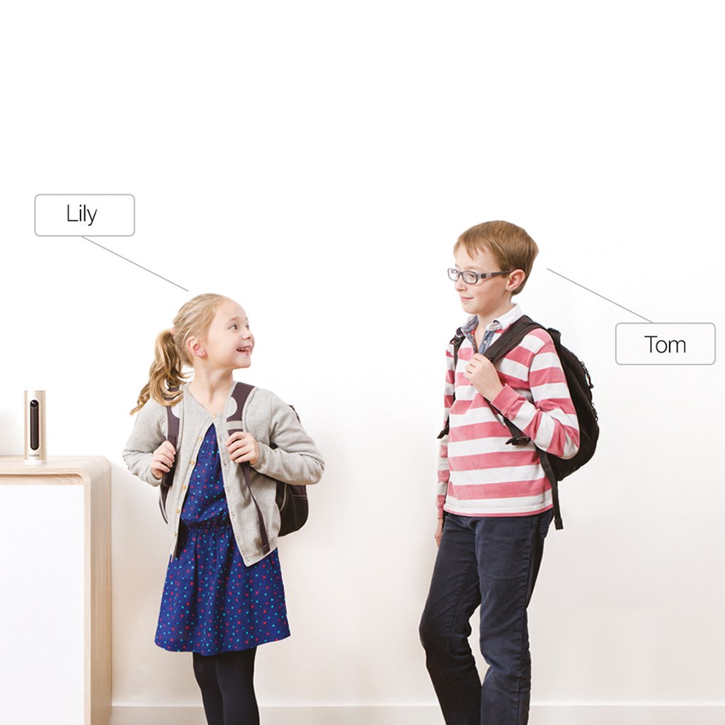 Lad dine børn passere foran kameraets føler, og Netatmo Welcome vil kunne genkende dem fremadrettet takket være kameraets revolutionerende teknologi til ansigtsgenkendelse. Netatmo Welcome kan genkende op til 16 ansigter.
